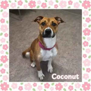 Hi, I’m Coconut! I’m a brown-eyed, wiggly-tailed, love-soaked pit bull just waiting to meet my forever person. People say I’ve got the goofiest smile and the softest ears-I’ll let you be the judge (but I think they’re right ??).