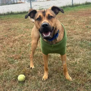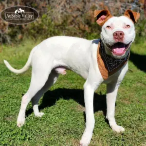 My back story is a little fuzzy – I found myself at Detroit Animal Care and Control – as a stray. I was very stressed and uncomfortable there, they were running out of room, and reached out to AVAS for help. Since I’ve arrived at AVAS – I’m a total social butterfly – with both humans and other dogs. I love everyone! I love to play! I love to run! I would do best in a home with another dog, as they will help keep me toned and fit – and also be there to remind me when my humans aren’t around – that I’m not alone. I should mention that I don’t know how I’d do with those things that meow, but maybe given a slow & proper introduction, I might be okay. I’d probably do better in a home w/ kids stable on their feet because my energy gets the best of me and I’d hate to knock anyone over.