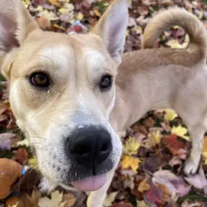 Leila came to us with her brother Rocky in September (who has been adopted!) and she’s been a huge sweetheart since day one. Leila is a very sweet and affectionate girl who’s always happy to go for a walk or play a game of fetch. She’s a very social gal who opens up to new people quickly and we think she would be an amazing family dog, but since she is so young she’s still working on her puppy manners. A home with lots of love and people ready to work with her, we think Leila will blossom into a wonderful member of the family.