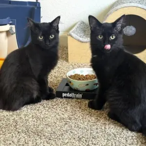 This week, we have a bonded pair of kittens: Bernie & Milton. Bernie and Milton came to TC Paw when a kind woman asked us for help with a feral mom and kittens she found. We placed the kittens in a TC Paw foster home. It took a few days for Bernie, the one with the little white patch on his chest, to trust his people, but now he is more interested in them all the time. He’s a sweet, adventurous, playful little guy who purrs whenever you walk in the room, as well as when he eats. He loves playing with his brother and dragging his toys around. He gets along with other cats, and he’s warming up to the foster family’s dog. His likes include teaser toys and closet hiding places. His one dislike is an empty food dish. Bernie may not be quick to trust, but earning his purr is worth it.