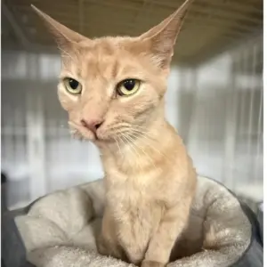Remy is one of several cats abandoned by an evicted owner who left a note saying he was leaving them to get back at his landlord. The cats were all in terrible condition, severely infested with fleas and suffering from flea dermatitis.