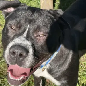 Celeste loves belly rubs, walks, and playing with toys. She’s an expert at finding those pesky squeakers! A big softy who sometimes doesn’t realize her own size, Celeste could use a bit of work on her manners as she occasionally jumps in search of kisses and head scratches. Though staff say she is awfully polite for a shelter dog!