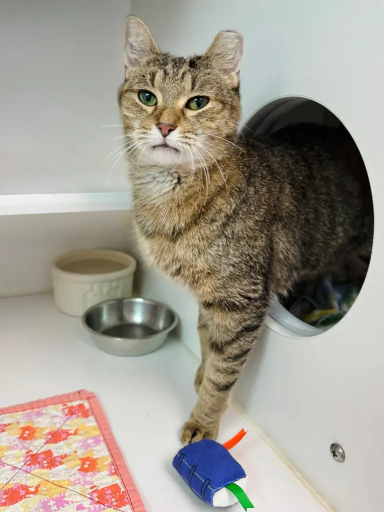 Pretty girl Zinnia has had a rough start to life, but you’d never know it from her bright spirit and loving heart. After spending some time behind the scenes getting the medical care she needed, she’s finally out on the adoption floor, and she’s doing wonderfully! Zinnia doesn’t let the hard stuff get her down. She’s always in high spirits and ready to soak up attention. This girl is the definition of a love bug. The moment you start petting her, her purr motor switches on – loud and proud! She makes the sweetest little biscuits and will gently rub her head against your forehead like she’s giving you a kitty kiss. All Zinnia wants is to be close to her person, sharing affection and companionship. If you’re looking for a devoted, affectionate companion who will fill your home with purrs and cuddles, Zinnia is ready to start her next chapter with you.
