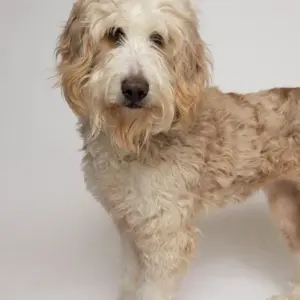 Sweet, loyal, and full of personality – that’s Rumi! This sweet Doodle mix came to us as a transfer from downstate. While we don’t know much about her past, we don’t think Rumi had the easiest start in life. Rumi is very cautious of new people and will take some time to accept them into her heart. Once she does though, watch out! This girl is ready to give all the love she has with lots of kisses and nose boops. Rumi would do best in a home with older children due that could respect her space until she is comfortable. She seems curious of other dogs and could do well in a home with other animals given the proper introduction. Rumi’s gentle demeanor make her a great leashed walker and she even appears to be house trained. How could you say no to that scruffy face?!? Stop by and let this gorgeous gal steal your heart!
